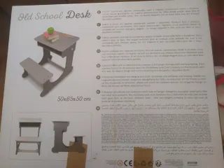 Escritorio infantil de estilo retro, perfecto para que los más pequeños desarrollen su creatividad. Incluye una ranura para lápices. - Diseño Old School Desk. - Ranura para lápices. - Medidas: 50x65x50 cm.