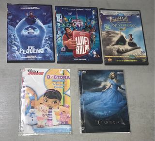 Colección de 5 películas infantiles en formato DVD. - Pie Pequeño - Wifi Ralph - Tinker Bell: La leyenda del Neverbeast - Doctora Juguetes: Te Toca un Chequeo - La Cenicienta