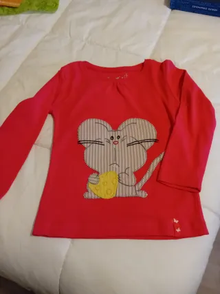 Camiseta de manga larga con un divertido diseño de ratón comiendo queso. Ideal para los más pequeños. - Aplicación de ratón con detalles de costura. - Tejido suave y cómodo.