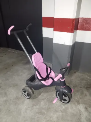 Triciclo infantil de la marca Molto en color rosa. Diseñado para los más pequeños. - Asiento ergonómico. - Barra de empuje. - Reposapiés.