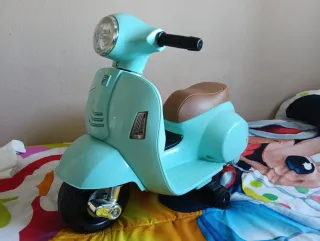Vespa eléctrica infantil azul y marrón