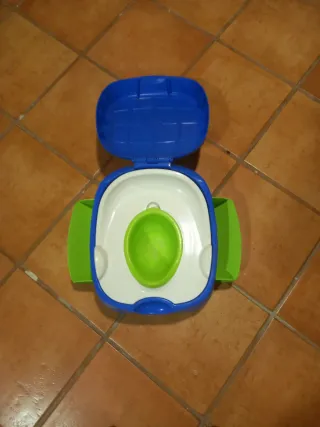 Orinal infantil con tapa abatible y asiento extraíble. - Color azul, blanco y verde. - Diseño ergonómico para mayor comodidad.