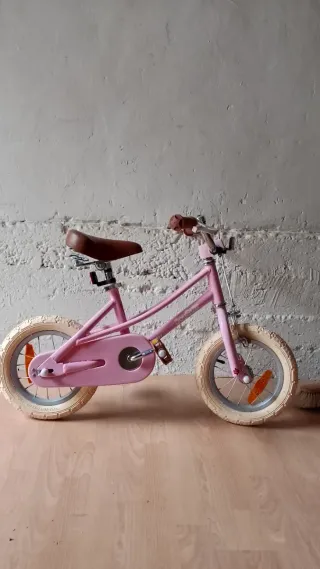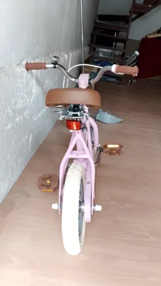 Bicicleta infantil de color rosa, ideal para los más pequeños. - Ruedas de color crema. - Sillín marrón. - Pedales con reflectantes.