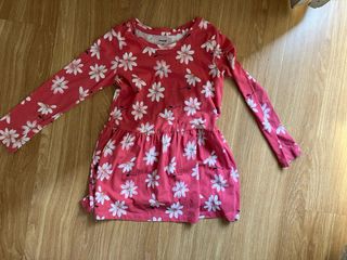 Vestido infantil con estampado de flores. - Manga larga. - Diseño con vuelo. - Base en color coral.