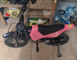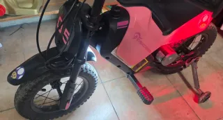 Moto eléctrica infantil de la marca Evercross, ideal para los más pequeños. Su diseño combina el color negro con detalles en rosa. - Diseño inspirado en motos de cross. - Decorada con pegatinas temáticas de videojuegos. - Manillar con puños de goma para un mejor agarre. - lleva ruedines que se pueden quitar ,las ruedas tienen luces. - batería nueva Samsung de 21.000MhA. Horas y horas de diversión sin cargar esta como nueva 5 usos. - tiene dos velocidades . - con su cargador.