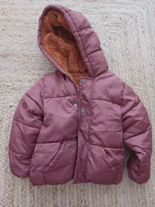 Chaqueta acolchada para niño o niña de 3 años (98-104 cm). Es muy calentita y cómoda. - Capucha forrada de borreguito. - Cierre con botones a presión. - Bolsillos delanteros.