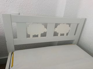 Cama infantil de IKEA, ideal para los más pequeños. Incluye colchón. - Estructura de madera blanca. - Cabecero con diseño de ovejas. - Colchón incluido.