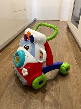 Divertido andador para bebés con múltiples actividades. - Diseño con colores vivos. - Asa de empuje verde. - Elementos interactivos en la parte frontal.