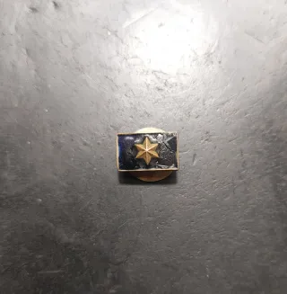 Insignia metálica dorada con diseño de Porta Bandera 10 Años. - Diseño con dos banderas y una estrella. - Inscripción PORTE DRAPEAU 10 ANS.