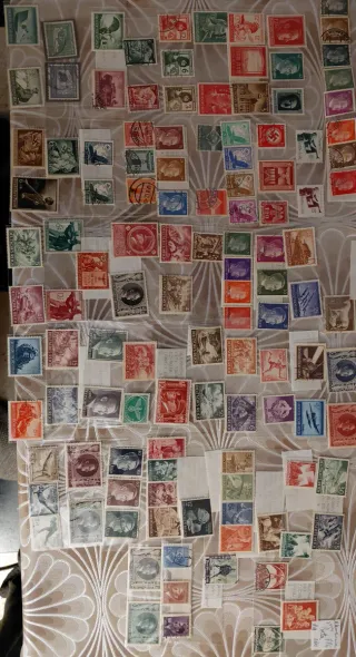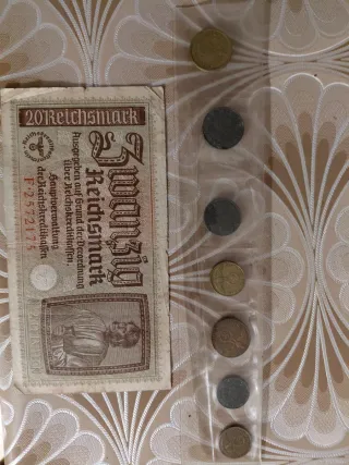 Lote de coleccionismo variado Alemania nazi. - 119 Sellos originales de la Alemania Nazi en perfecto estado (algunos sellados) - Monedas + Billete con esvástica - Insignias varias(réplicas) No comulgo con la ideología nazi.
