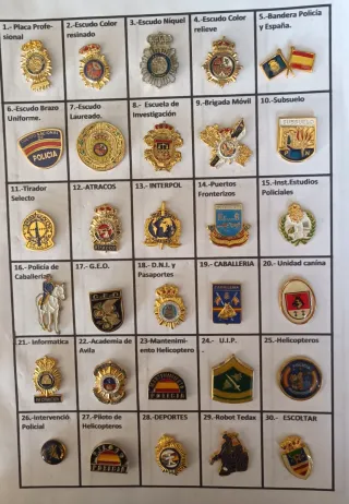 Lote de 30 insignias de la Guardia Civil. Incluye una variedad de diseños y emblemas.TAMBIEN te puede interesar colección 60 insignia Policía Nacional por 60€ - 30 insignias. - Diseños variados de la Guardia Civil.