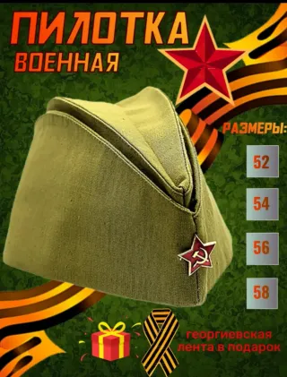 CINTA DE SAN JORGE DE REGALO 🎁 ❗❗❗ Boina militar estilo Pilotka del ejército ruso de la URSS. Incluye insignia de estrella roja de la Unión Soviética. Nombre: Se conoce comúnmente como pilotka (пилотка en ruso), un término que proviene de su uso original por parte de los pilotos de la fuerza aérea en la Primera Guerra Mundial. Uso: Es un tipo de gorra de guarnición, un sombrero de servicio de campo utilizado por soldados y oficiales, especialmente asociado con el ejército ruso y soviético. - Tallas disponibles: 52, 54, 56, 58. - Color: Verde militar.
