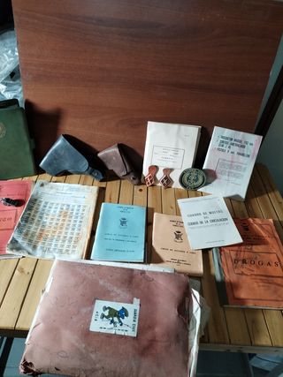 Se vende lote de accesorios de la guardia civil años 80. Fundas de arma, carpeta guardia civil tráfico, insignias, libros de estudio etc. Se vende todo junto, nada por separado.
