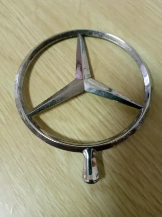 Emblema de Mercedes-Benz con el diseño clásico de estrella de tres puntas. En estado pongo "bueno" porque no tiene la bola de abajo. - Acabado cromado brillante. - Diseño circular con estrella central. - Base con soporte para montaje.