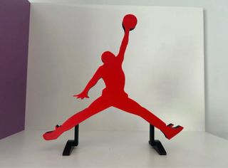 Figura decorativa tridimensional del icónico logo de Michael Jordan. - Diseño en silueta roja. - Soporte negro incluido. - Dimensiones aproximadas: 21x21 cm.