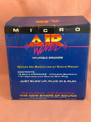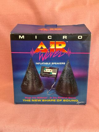 Altavoces hinchables Air Waves de los años 80. Un diseño retro y divertido para tu música. - Altavoces inflables en forma de cono. - Conexión para Walkman o cualquier estéreo personal. - Diseño The New Shape of Sound.