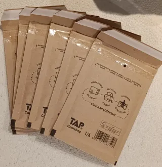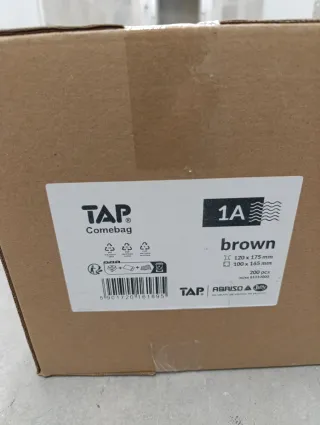 Pack de 200 sobres acolchados de la marca TAP, modelo Comebag 1/A, en color marrón. Medida interior 100x165mm Medida exterior 120x175mm
