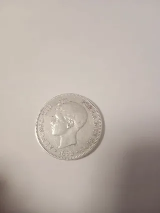 Moneda de 5 pesetas con la efigie de Alfonso XIII. - Material: Plata - Año de acuñación: 1898. - Leyenda: POR LA G. DE DIOS y ALFONSO XIII REY DE ESPAÑA.