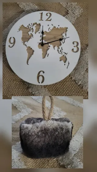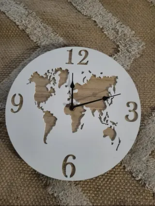 Elegante reloj de pared con diseño de mapa del mundo. Regalo el sujeta puerta - Diseño moderno y decorativo. - Números grandes para fácil lectura. - Acabado en blanco. Mide 30 de diametro.