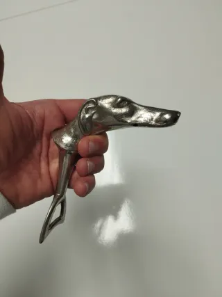 Original abrebotellas con diseño de cabeza de perro galgo. - Material metálico plateado. - Estilo vintage.
