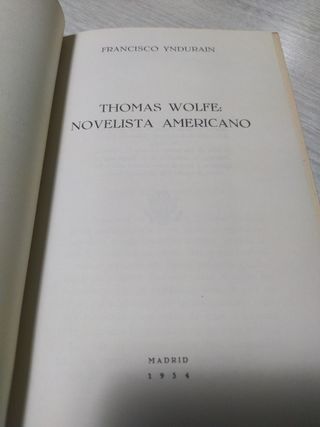 Libro sobre Thomas Wolfe, el novelista americano. - editado en 1954 - Autor: Francisco Yndurain. - Colección Estados Unidos.