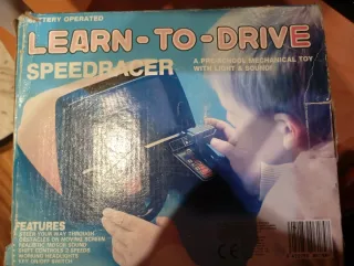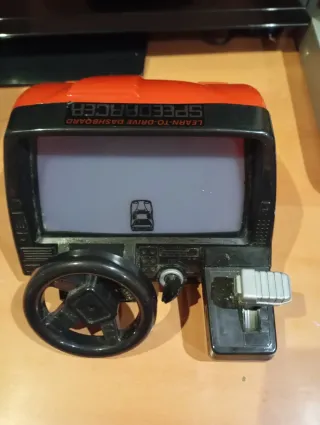 Juego de conducción retro Speed Racer con diseño de salpicadero. - Volante integrado. - Palanca de cambios. - Pantalla con gráfico de coche.