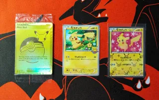 Conjunto de tres cartas Pokémon. - Carta de Entrenador Poké Ball 25th aniversario ( swsh 146 ) - Carta de Pikachu ( SHC 007 ) - Carta de Pikachu ( xy-p 001 )