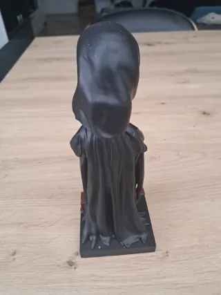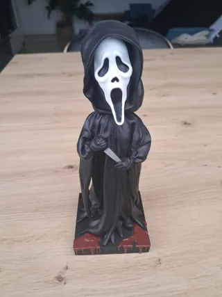Figura coleccionable del personaje Scream. - Diseño inspirado en la película. - Base decorada con detalles sangrientos. - Sostiene un cuchillo en sus manos.