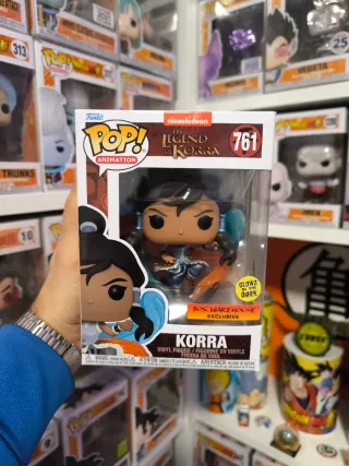 Figura Funko Pop! de Korra, personaje de la serie The Legend of Korra. - Exclusiva de Box Warehouse. - Brilla en la oscuridad (Glows in the Dark). - Número de figura: 761.