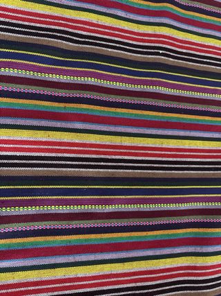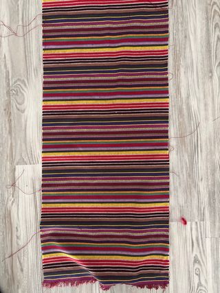 Tela hebrea con un diseño de rayas multicolor. Ideal para confecionae fajin 150x30cm