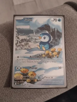 Carta de Pokémon de Piplup, edición básica. - Ataque: Buscar Apoyo - Ataque: Placaje - Ilustrador: Jiro Sasumo - Número de carta: 098/094