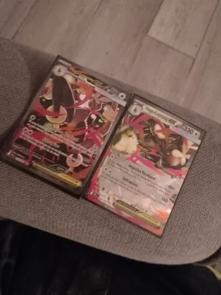Lote de cartas Pokémon que incluye un Charizard y un Mismagius, además de 40 cartas de Energía Básica sin abrir. - Carta Pokémon Charizard. - Carta Pokémon Mismagius. - 40 cartas de Energía Básica.