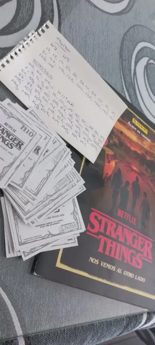 Colección de cromos de Stranger Things. Ideal para completar tu álbum o intercambiar. - Cromos faltantes y repetidos disponibles. - Números variados para coleccionistas.