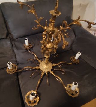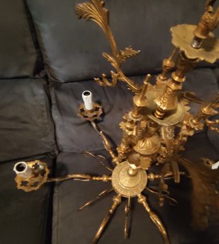 Impresionante lámpara antigua, color bronce. La parte de arriba se puede quitar.