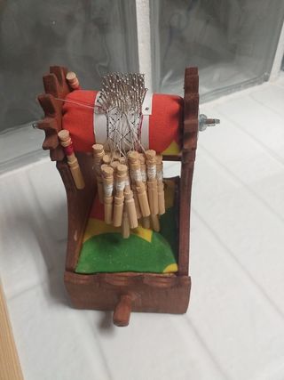 Excepcional bolillo completamente artesano en miniatura. El encaje se ha confeccionado ahí. Los palillos son hechos a mano, miden 4.5 cm. Una auténtica obra de arte para disfrutar tejiendo el encaje o decorando un rincón entrañable......EDPECIAL SAN VALENTIN 115€