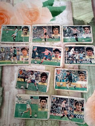 Se venden 10 cromos de la Liga 84-85 de diferentes jugadores. Están algo usados, con señales del paso del tiempo, pero en general están en buen estado para su edad. - 10 cromos de fútbol de la temporada 84-85. - Jugadores de equipos como Real Madrid, Athletic de Bilbao, Valencia CF, etc. - Ideales para coleccionistas.