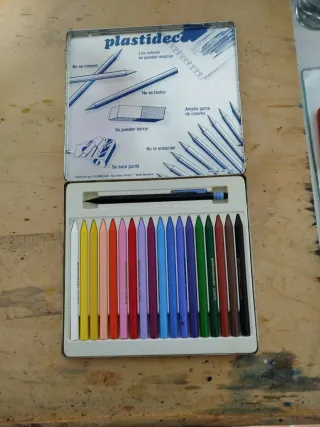 Caja metálica de 18 lápices de colores Plastidecor. Incluye el portaminas original. Todo sin estrenar