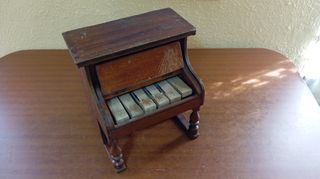 Precioso pianito antiguo de madera, ideal para decoración o coleccionistas. Se encuentra en un aceptable estado, aunque muestra señales del paso del tiempo, tal como se ve en las fotos, que le dan un encanto especial. - Fabricado en madera. - Diseño clásico. - Ideal para decoración. Mide 21x16x22 cm. Algunas teclas suenan y otras no. Si se repara pueden sonar todas. Precio no negociable.