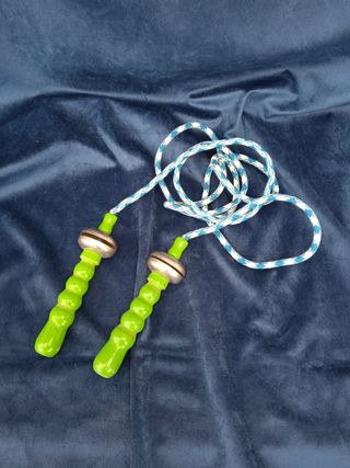 Antigua comba, saltador, juguete, con asas de madera y sonajero, esta como nuevo, bonitos colores, colección, exposición, decoración