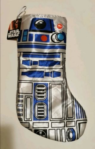 R2-D2 Star Wars calcetín de tela para regalos Papá Noel de Navidad y Reyes, decoración navideña, adorno árbol... Con circuito electrónico de sonido a pilas con botón, funcionando, artículo original de colección con licencia oficial, descatalogado, nunca usado. Venta o intercambio por fábrica lemax o similar, casita pueblo iluminada, atracción de feria con movimiento, noria o tiovivo, tren escala n o z, juguete antiguo, coche o robot de hojalata, reloj automático de cuerda, moneda antigua...
