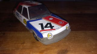 Coche de hojalata de la marca Paya, un clásico juguete. Es un coche de rallye, con detalles del equipo número 14. Jyesa rico nacoral...juguete - Es un coche de colección. - Presenta señales de uso acordes a su antigüedad. - Ideal para coleccionistas de coches de hojalata.