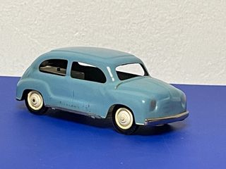 Antigua miniatura de Fiat 600 realizada en hojalata con mecanismo a fricción por Aurelio Marchasini-Bolognia, Italia, en los años 80, en un presenta unas pequeñas faltas de pintura en los laterales, del paso de los años. Ver fotos. Nuevo de colección privada. 11 cm de longitud. Tags: Seat 600 Rico Sanchis Paya Pilen Nacoral Guisval Exin Tri-ang Scalextric Slot Ninco Juguete antiguo raro vintage