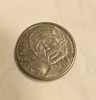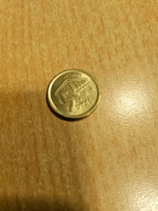 Moneda de 25 pesetas del año 1995. - Diseño con agujero central. - Acabado metálico.