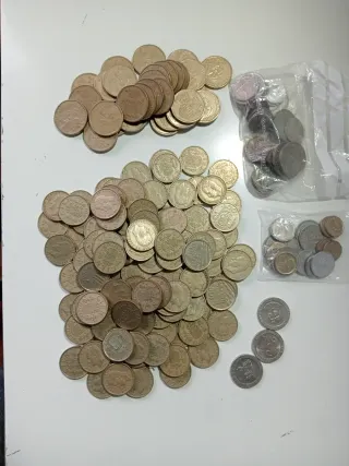 Conjunto de 148 monedas españolas de diferentes épocas y valores. Ideal para coleccionistas. DE 100-200-500 ptas. - Variedad de diseños y acuñaciones. - Monedas de circulación y conmemorativas. AÑADIMOS 2 BOLSITAS VARIADAS Y UNA CARTERUTA en el pack. Entregamos lo de las fotos.