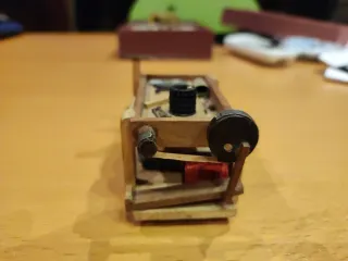 Detalladas miniaturas de madera: - Estructura de rueda de afilador con pequeñas herramientas incluidas. - Cajita de madera que contine un Domino con 27 fichas, medidas 4x1,5x1,5cm - Juego de parchis con 3 cubiletes, 2 dados y 10 fichas, medidas del tablero 6,5x6,5cm - Cajita de madera que contiene un juego de cartas (53 unidades), medidas de la caja 4x3x1,5 Si solo te interesa parte del lote, enviame un mensaje y te doy precio