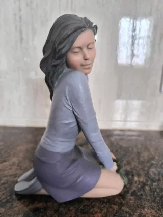 Figura decorativa de Elisa Anemonas. Una pieza delicada con un diseño elegante. - Figura de mujer con flores. - Tonos grises y morados.