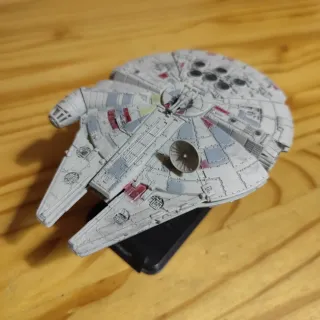 Réplica detallada del icónico Halcón Milenario de Star Wars. Ideal para coleccionistas y fans de la saga. - Diseño fiel a la nave. - Pintura con detalles. - Base de exposición incluida.