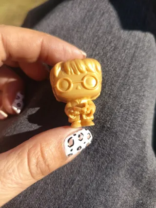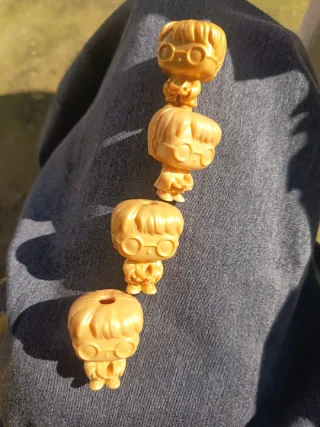 Lote de 4 figuras coleccionables de Harry Potter con acabado dorado. - Diseño estilizado tipo Funko Pop. - Detalle de gafas y vestimenta característicos.