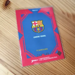 Carta de Lamine Yamal numerada a 199 del FC Barcelona de la colección Daka 2025/2026.