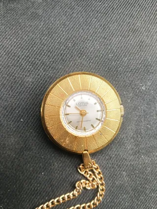 Elegante reloj de bolsillo de la marca Lotus, modelo Top Time. Su diseño es clásico y atemporal. - Caja y cadena de color dorado. - Esfera blanca con detalles. - Mecanismo antimanético.